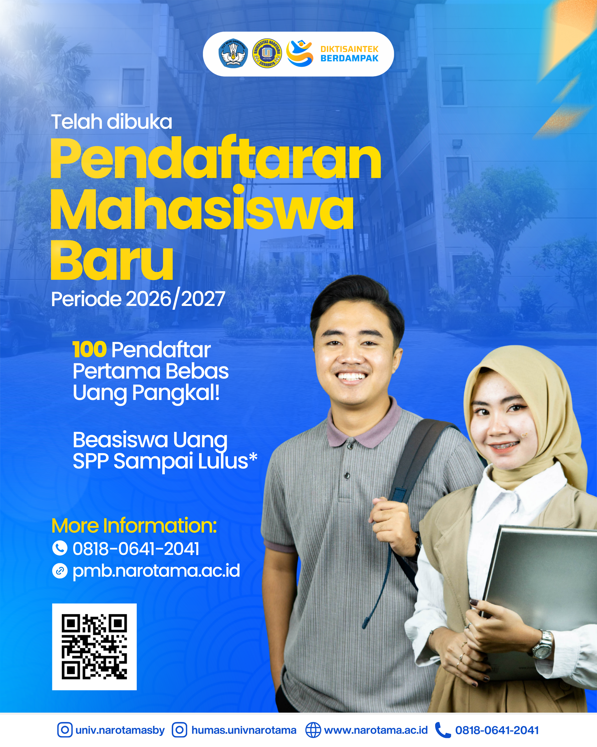 Program Studi Teknik Sipil Fakultas Teknik Universitas Narotama kembali menunjukkan komitmennya dalam peningkatan kompetensi sumber daya manusia di bidang konstruksi. Hal tersebut diwujudkan melalui Pelatihan Aplikator Baja Ringan yang diselenggarakan selama dua hari, pada 19–20 Januari 2026, bekerja sama dengan HAPI (Himpunan Aplikator Indonesia) dan didukung oleh Kencana Group.